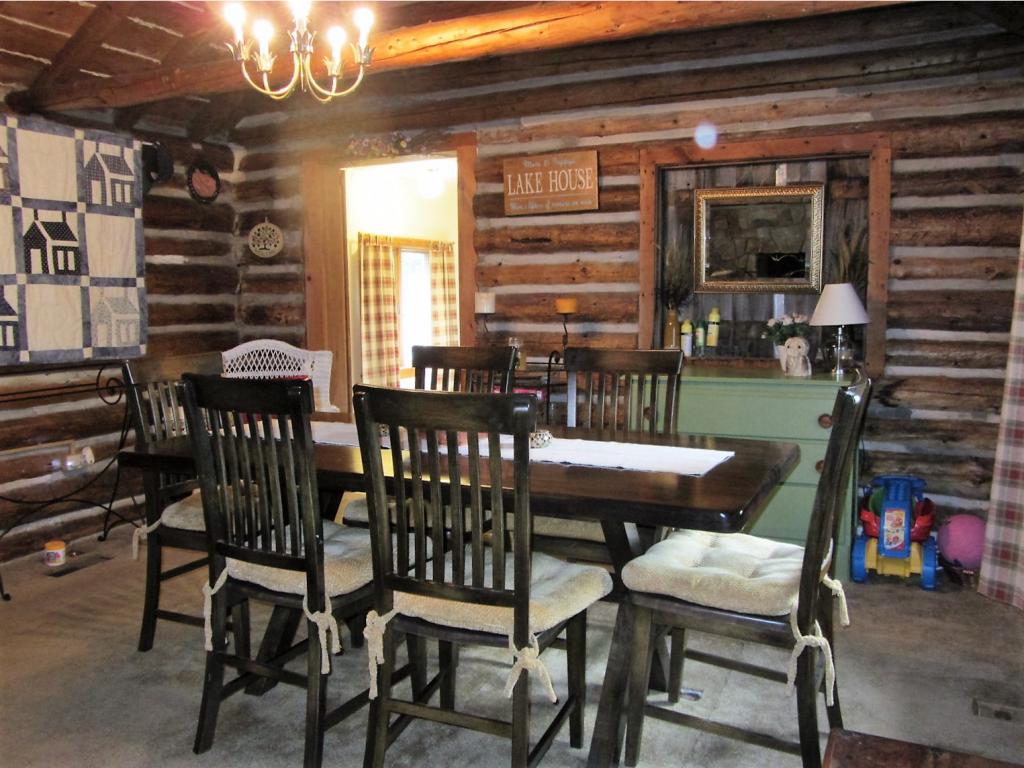 Enjoy the rustic charm of an older log cabin with all the modern amenities of modern living, including a whirlpool tub and separate shower in the master bedroom, as well as a fully-equipped kitchen and baseboard heating. This nine-room home has three bedrooms, two full bathrooms and two stone fireplaces.