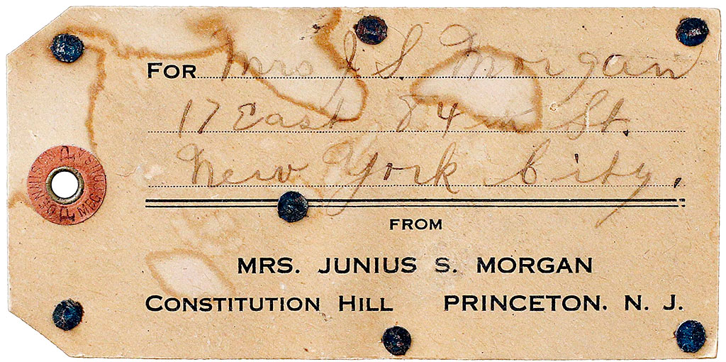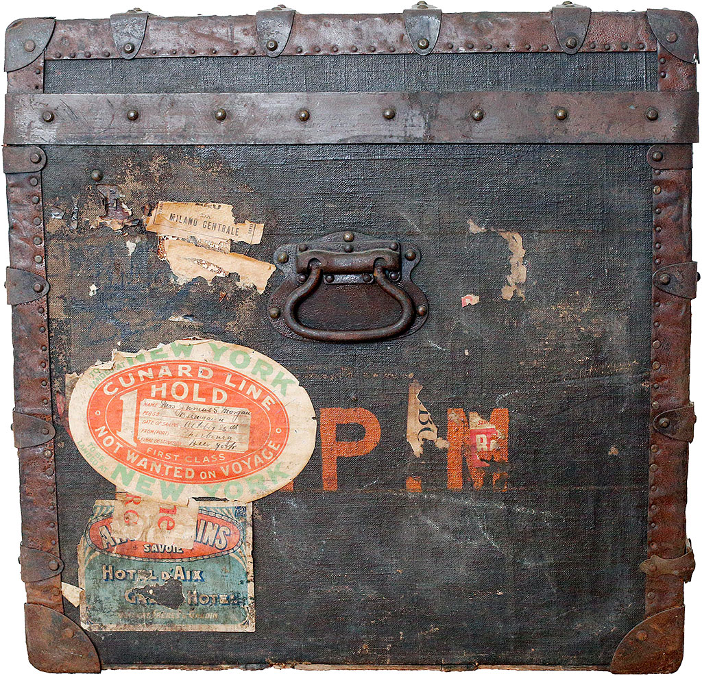 The trunk is believed to have been in the couple’s New York City home at the time of George Morgan’s death in 1911. Several trunks were transferred from the Manhattan home to Constitution Hill, the Princeton, N.J., home of their son Julius Spencer Morgan and his wife, Josephine.